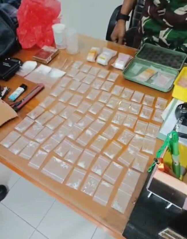 Hendara mengatakan ada tiga kantong yang masing-masing kantong berisi 10 gram diduga namun satu kantong sudah diurai ke dalam 75 paket siap edar.
