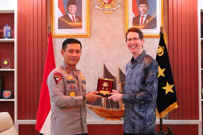 POLDA Sulawesi Selatan, Binkari – Kapolda Sulawesi Selatan, Irjen Pol. Drs. Rusdi Hartono, M.Si., menerima kunjungan kerja dan silaturahmi dari Konsul Jenderal Australia untuk Makassar, Todd Dias, bertempat di Mapolda Sulsel, Kamis (31/07/2025).