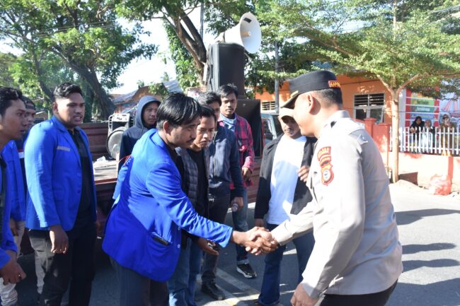 Kapolres Bulukumba AKBP Restu Wijayanto, S.I.K bersama Dandim 1411/Blk Letkol Inf. Sarman, S.Hub Int., turut hadir langsung memantau jalannya aksi dengan menemui dan melakukan pendekatan persuasif serta humanis kepada peserta aksi.