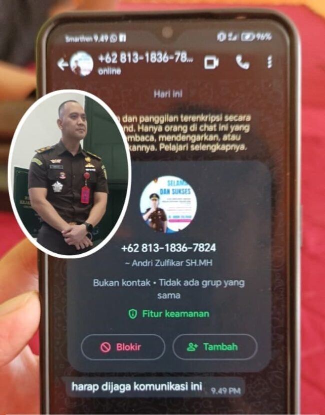 “Itu jelas penipuan. Saya pastikan tidak pernah meminta sejumlah uang kepada pihak manapun. Masyarakat harus waspada bila ada pihak yang menghubungi dengan mencatut nama saya,” tegas Andri Zulfikar saat dikonfirmasi, Senin (19/8/2025).