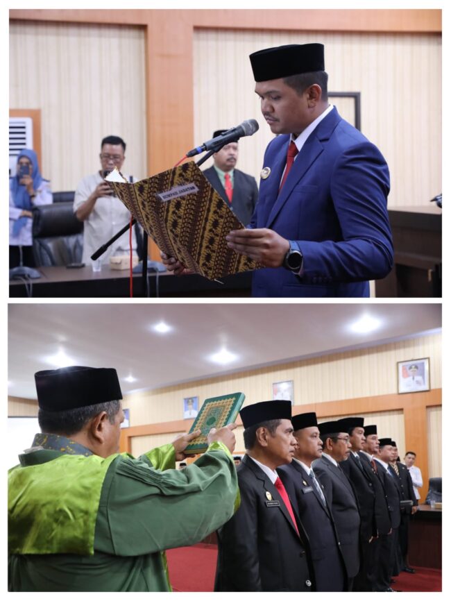 BANTAENG, Sulsel⚡Binkari — Sebanyak tujuh Pejabat Pimpinan Tinggi Pratama resmi dilantik dan diambil sumpah jabatannya oleh Bupati Bantaeng, M. Fathul Fauzy Nurdin. Pelantikan yang berlangsung di Ruang Pola Kantor Bupati Bantaeng, Rabu (20/8), turut disaksikan oleh Wakil Bupati Bantaeng, H. Sahabuddin, serta Sekretaris Daerah, H. Abdul Wahab.