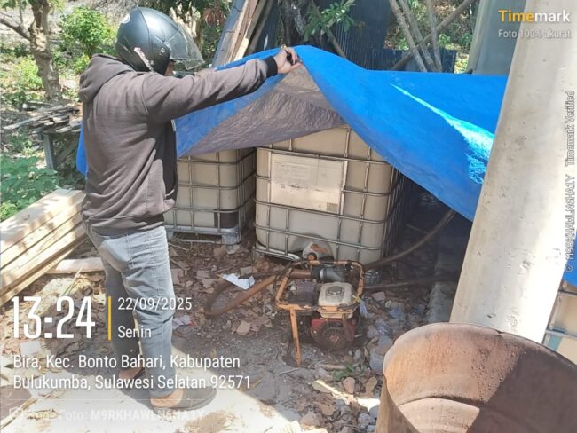Bulukumba, Sulawesi Selatan⚡️Binkari – Senin 22 September 2025, Awak media kembali mengungkap praktik haram penimbunan BBM subsidi jenis solar di kawasan Bira, Kecamatan Bonto Bahari, Kabupaten Bulukumba. Dalam temuan lapangan, sedikitnya 20 tandon berisi solar diduga kuat menjadi stok ilegal untuk dijual kembali dengan harga non-subsidi.