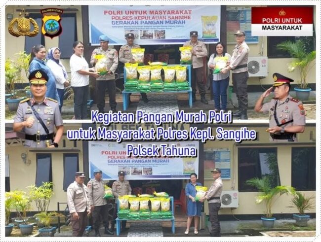 Kapolsek Tahuna menyampaikan bahwa kegiatan pangan murah ini merupakan wujud kepedulian Polri kepada masyarakat dalam menghadapi fluktuasi harga kebutuhan pokok.