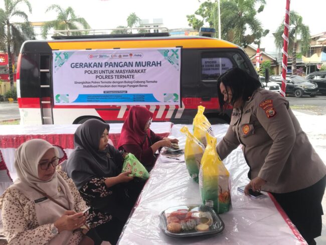 POKRES Ternate, Binkari – Dalam rangka menjaga stabilitas pasokan dan harga pangan beras, Polres Ternate bersama Bulog Cabang Ternate menggelar Gerakan Pangan Murah (GPM) Polri untuk Masyarakat secara serentak di seluruh Indonesia, Kamis (14/8/2025).