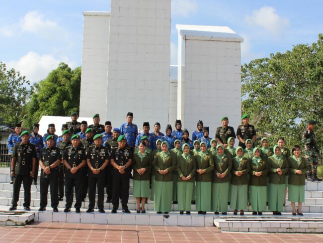 PALANGKA RAYA, Kalimantan Tengah ¶ Binkari – Komandan Kodim (Dandim) 1016 Palangka Raya Kolonel Inf Frans Kishin Panjaitan, S.A.P., M.P.M., M.Han, beserta jajaran mengikuti ziarah ke taman makam pahlawan Sanaman Lampang, Jalan Cilik Riwut Km 2,5 Kelurahan Palangka, Kecamatan Jekan Raya, Kota Palangka Raya, Senin (12/12).