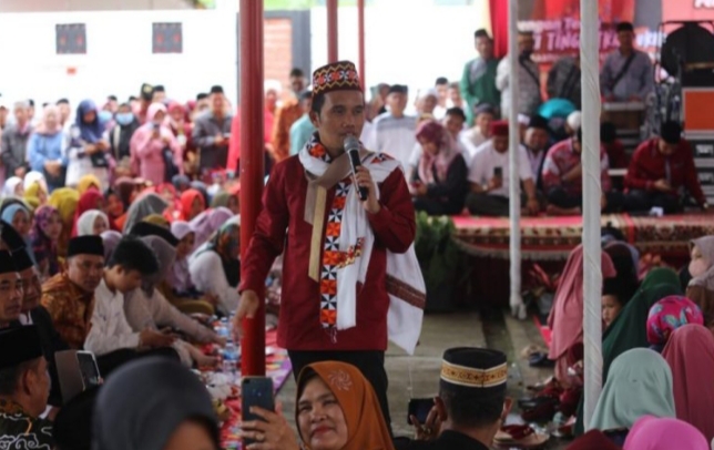 Selanjutnya, Pria yang akrab di sapa Pakcik, memberberkan keberhasilan dari pitu (7) program dan tiga (3) komitmen yang telah digulirkan dirinya bersama wakil bupati baik bidang infrasturktur, pembangunan maupun bidang keimanan.
