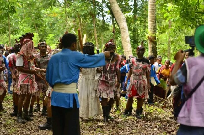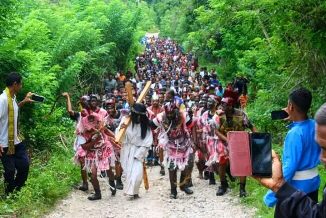 NTT, Binkari – THS-THM, PSHT dan Orang muda katolik (OMK) yang berada di stasi eokpuran, wilayah paroki Santa Maria Fatima Nurobo Dekenat malaka, keuskupan Atambua yang mengambil bagian dalam pentas jalan salib hidup, menggemar banyak kesaksian iman mereka melalui pentas jalan salib hidup.