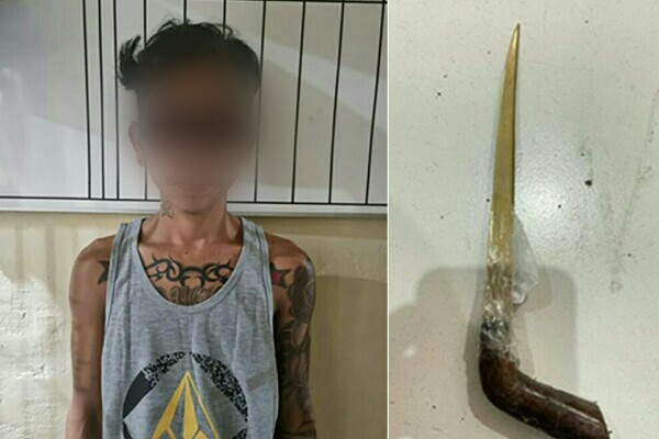 Pria bertato ini ditangkap saat polisi melakukan patroli dan pemeriksaan senjata tajam di Taman Kota, dimana saat itu juga terjadi kasus pembunuhan di daerah tersebut.